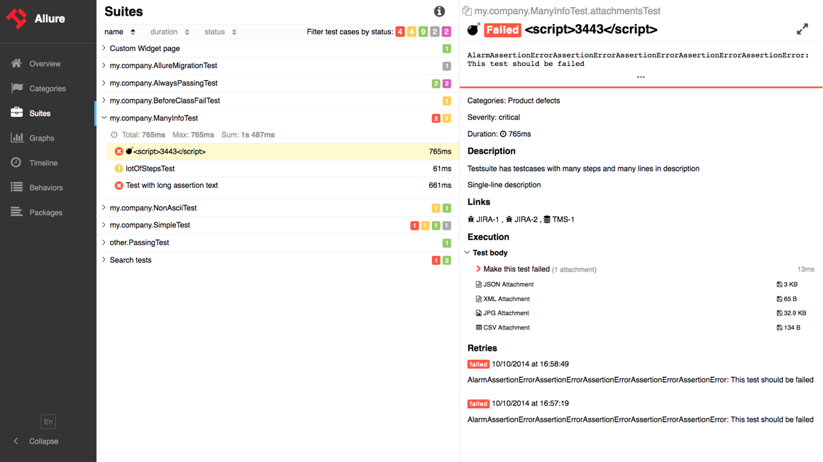 - Allure是⼀个轻量级,灵活的,⽀持多语⾔的测试报告⼯具